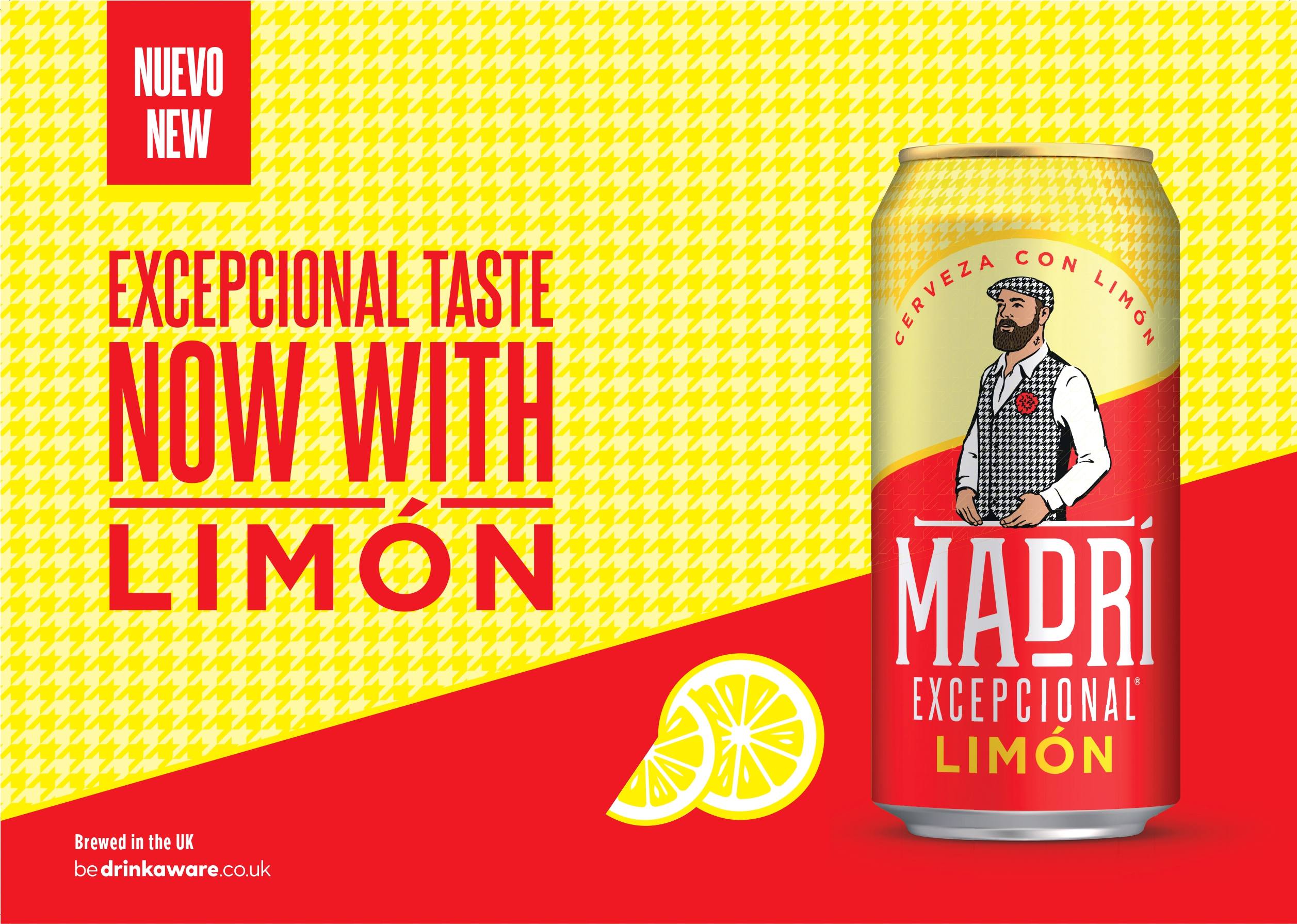 A new innovation from Madrí Excepcional, with Excepcional taste, now with Limón. Madrí Excepcional Limón has all the taste characteristics of a Mediterranean Flavoured Beer, full of flavour and aroma of Limóns at 3.4% ABV, with a light golden colour. Our beer has a fresh and zesty Limón aroma, and taste of Limón and other citrus fruits that are naturally sweet and balanced. The finish of the beer is tart with a subtle sweetness, that is short and refreshing.
